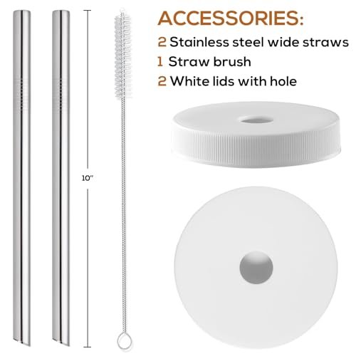 Upon unboxing the bottles, I was immediately impressed by their sleek, modern design. Each bottle is made from high-quality, thick lead-free soda-lime glass, giving it a sturdy feel that promises durability. The black lids have a sophisticated touch, and I absolutely adore the thoughtful addition of two wide stainless steel straws and a straw brush—perfect for thick smoothies and bubble tea! Not to mention, the included labels make it incredibly easy to stay organized.
