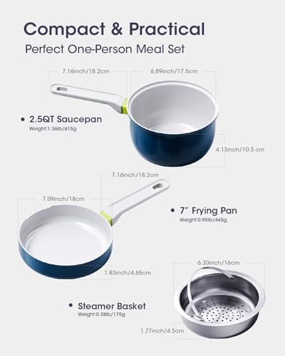 • Multi-Functional Cookware Set: With a 2.5QT saucepan and a 7" frying pan, this set allows for frying, boiling, and steaming—all with just one set of cookware. I made scrambled eggs and steamed veggies in one go, which made breakfast prep a breeze.