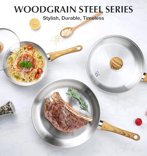 These stainless steel pans offer excellent heat transfer, ensuring even cooking—unlike some non-stick options that may have hot spots.