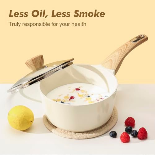 As I unboxed the SENSARTE Ceramic Cookware Set, I was instantly captivated by its modern aesthetic. The chic ceramic surface accompanied by beautiful wood-grain Bakelite handles exudes elegance, yet feels sturdy and practical. Running my fingers along the surface, I immediately noticed the quality of materials used; this cookware feels both lightweight and substantial, promising durability without compromising ease of use. The thoughtful details, like the explosion-proof glass lids, were clearly aimed at home cooks like us, ensuring we can monitor our dishes without lifting a lid.