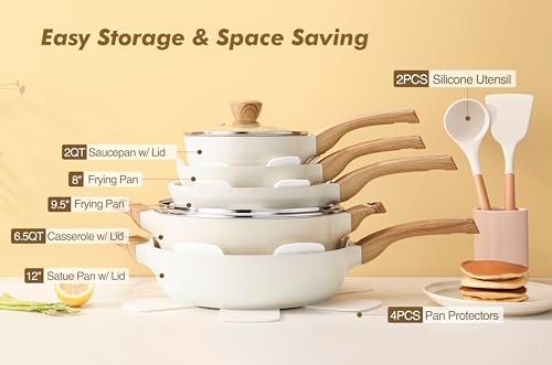 - Versatile Cooking Options: With an 8-inch and 9.5-inch frying pan, sauté pan, casserole, and saucepan, this 14-piece set covers all your culinary needs.