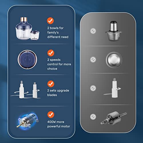 Power & Precision: The 400W motor paired with stainless steel blades—which feature a unique 4-layer design—ensures finely chopped ingredients with ease. The two adjustable speeds are a dream, allowing me to work with everything from delicate herbs to tougher veggies without any hassle.