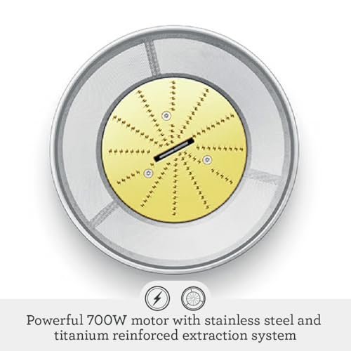 This juicer may be compact, but it’s power-packed with features that make juicing a breeze! The standout feature is undoubtedly the unique extraction system—its titanium-reinforced disc and Italian-made micro mesh filter basket work wonders in maximizing juice and nutrient extraction, ensuring you get the most out of your produce. The extra-wide chute is brilliant; I’ve juiced whole apples, carrots, and even oranges without breaking a sweat.