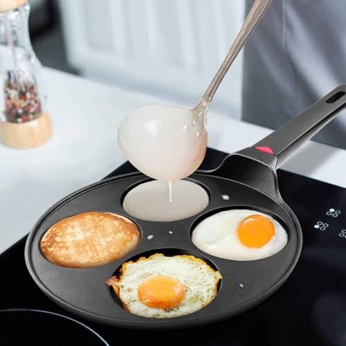 Multipurpose Cooking: At 10.5 inches, with molds for four 4-inch flapjacks, this pan is perfect for not just pancakes, but also eggs, crepes, and more. It’s a one-stop-shop for breakfast!