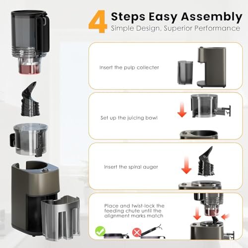 As soon as I unboxed the juicer, I was struck by its sleek design and sturdy build. The gray finish gives it a modern touch, and the materials feel durable yet lightweight—a perfect combination for any busy kitchen. I appreciated the thoughtful design features, like the intuitive assembly process. I was able to put it together without any tools in about five minutes, making it a beginner-friendly option for anyone eager to dive into the world of juicing!