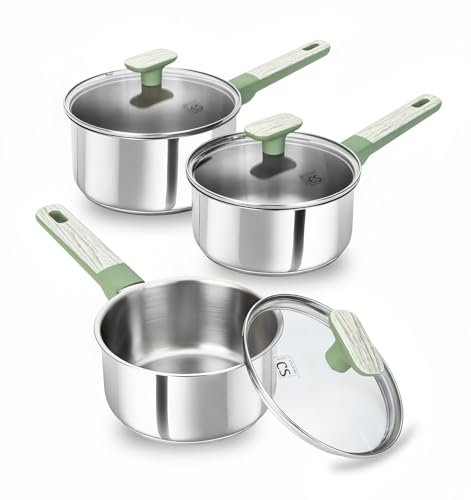 From the moment I laid eyes on this sleek set, I was smitten. With three essential sizes—1QT, 2QT, and 3QT—these stainless steel pans are perfect for various cooking tasks, allowing me to prepare everything with precision. The premium 18/10 stainless steel boasts a stunning shine and is built to last, promising even heating and protection of my food’s flavors. If you’ve been on the lookout for pots that make your cooking experience more enjoyable and efficient, you’re in for a treat!