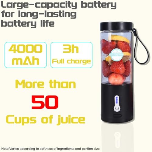 Type-C Safety Charge: Equipped with a 4000mAh rechargeable battery, I can easily recharge it via power bank or computer. A full charge offers enough juice for about 10-15 cups—perfect for a week’s worth of smoothies.