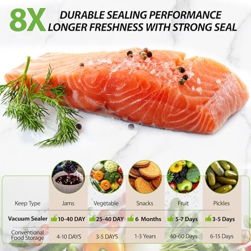 I love that this vacuum sealer allows me to extend the shelf life of everything from meats to seasonal fruits. Goodbye, spoiled food! I can now buy in bulk and enjoy fresh produce year-round, cutting back on my grocery costs and food waste.