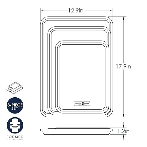 Upon unboxing this set, I was immediately struck by the sleek and sturdy design of the pans. Made from pure aluminum, they felt impressively lightweight yet solid, exuding a professional quality that you’d expect from commercial bakeware. The encapsulated galvanized steel rims gave me peace of mind—no more worrying about warping or misshapen pans after multiple uses! The finish was shiny and smooth, and I could tell right away that this was a product built to last. The assortment of sizes—a Quarter Sheet, Jelly Roll, and Half Sheet—was just what I needed, catering to everything from large sheet cakes to quick baking batches of cookies.