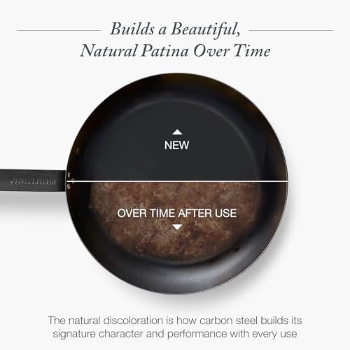 Hailing from New York Magazine’s The Strategist as the top budget-friendly carbon steel option, this skillet is indeed a no-nonsense kitchen workhorse. Here’s what I loved: