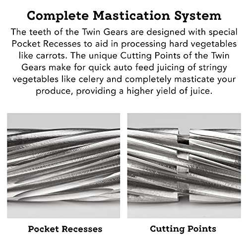 It manages both soft and hard ingredients well, thanks to its twin gear mechanism, making it versatile.