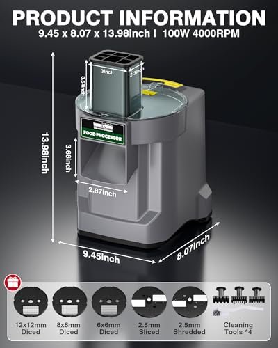 300 lbs/h with Upgraded Blades: The robust 100W, 4000 RPM copper motor is a powerhouse! Capable of processing up to 300 pounds of fruits and vegetables per hour, it ensures precise and uniform cuts every time. It took my dicing tasks from tedious to instantaneous!